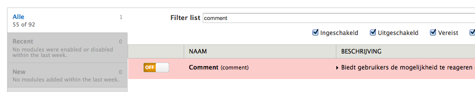 - Om de tweede te laten verdwijnen kan je bijvoorbeeld[1] onder modules (admin/modules) de module ‘comment’ uitzetten.